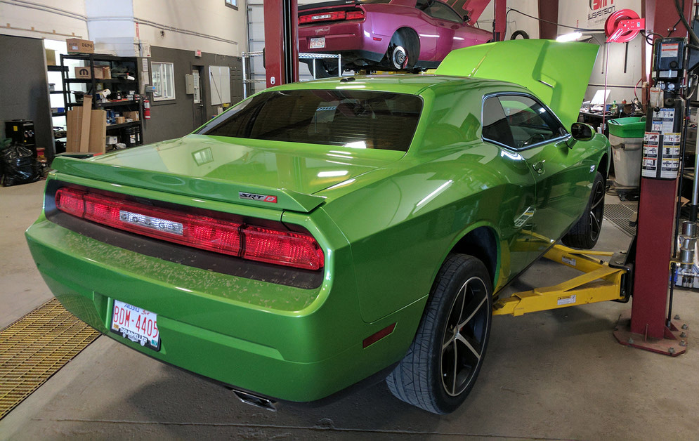 2011 Challenger SRT 8This Sweet Ride has made the trip to us twice. Every time it gets better and better. The First trip we installed a set of Pedders coilovers and gave it a meaner stance. The second time around we gave it a little more punch with some American Racing Headers Long Tubes and some QTP Electric Cutouts - Angry Husband or Happy Wife Mode. We tied this all together with a Custom Dyno tune to get as many ponies out of this combo as possible. |