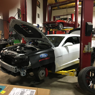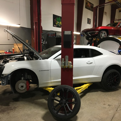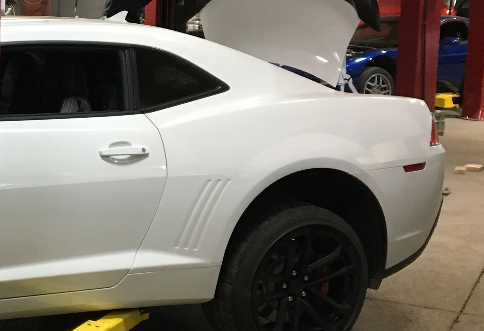 2014 Camaro 1LEWhite Lightning! No its not moonshine. On this Camaro we installed a 2.9 Whipple supercharger system, TSP long tube headers and sprayed a little water meth in the mix to get some 623 hp out of this beast. That gets things moving quite a bit quicker than the stock 374 hp. |