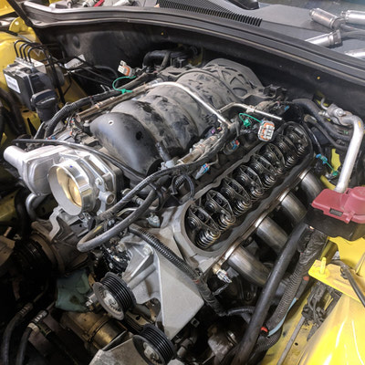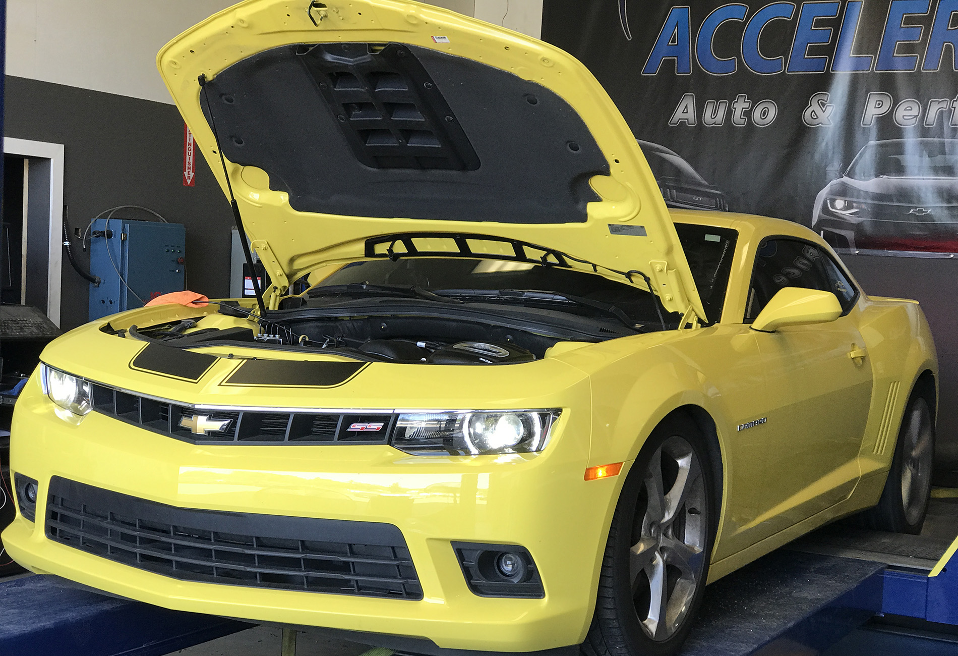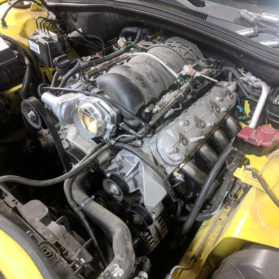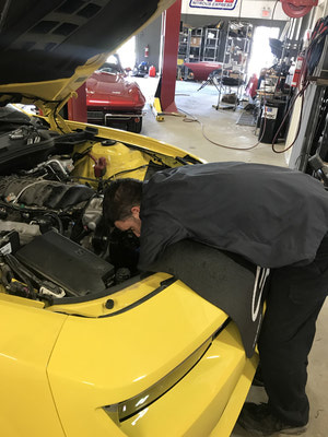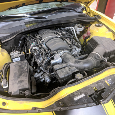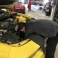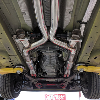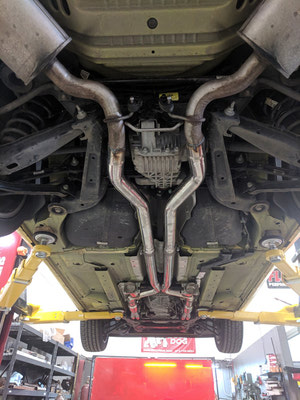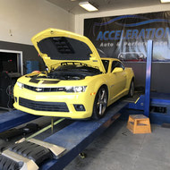 Mello Yellow? Not any more!! This Customer won our contest for QTP Electric cutouts. We installed them and he is ready to rock. But rather than have all bark with no bite he decided to add some more bite. The bite starts with a BTR Stage 3 cam, BTR dual springs, JP billet timing set, BTR trunnion kit, TSP long tube headers and off road X pipe, AFE air intake and a custom tune using HP tuners on our Mustang Dyno. The additional 75 rear wheel pony’s helped add a little more bite!! With some of that good does come some bad - lack of traction. So later on we installed a rear brake kit to accommodate some 15” drag Stickys!