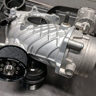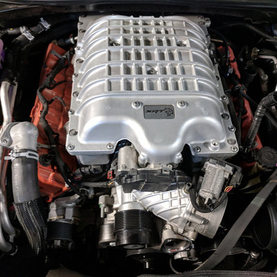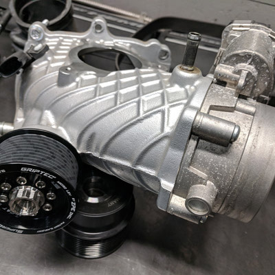 The owner of this Black Beauty came to us with a very simple request. A pin, a pulley and a tune. So step one was to pin the stock crank pulley. Step two was install a 2.85 ZPE GripTec pulley with a RPM Gates blower belt. Step three was to custom tune the car on our dyno using HP Tuners. The Results? How about a gain of over 100 rwhp!!! Oh ya and later on we added Demon injectors and an air intake and picked up 34 more hp. Hmmmm time for some headers and a smaller pulley!!